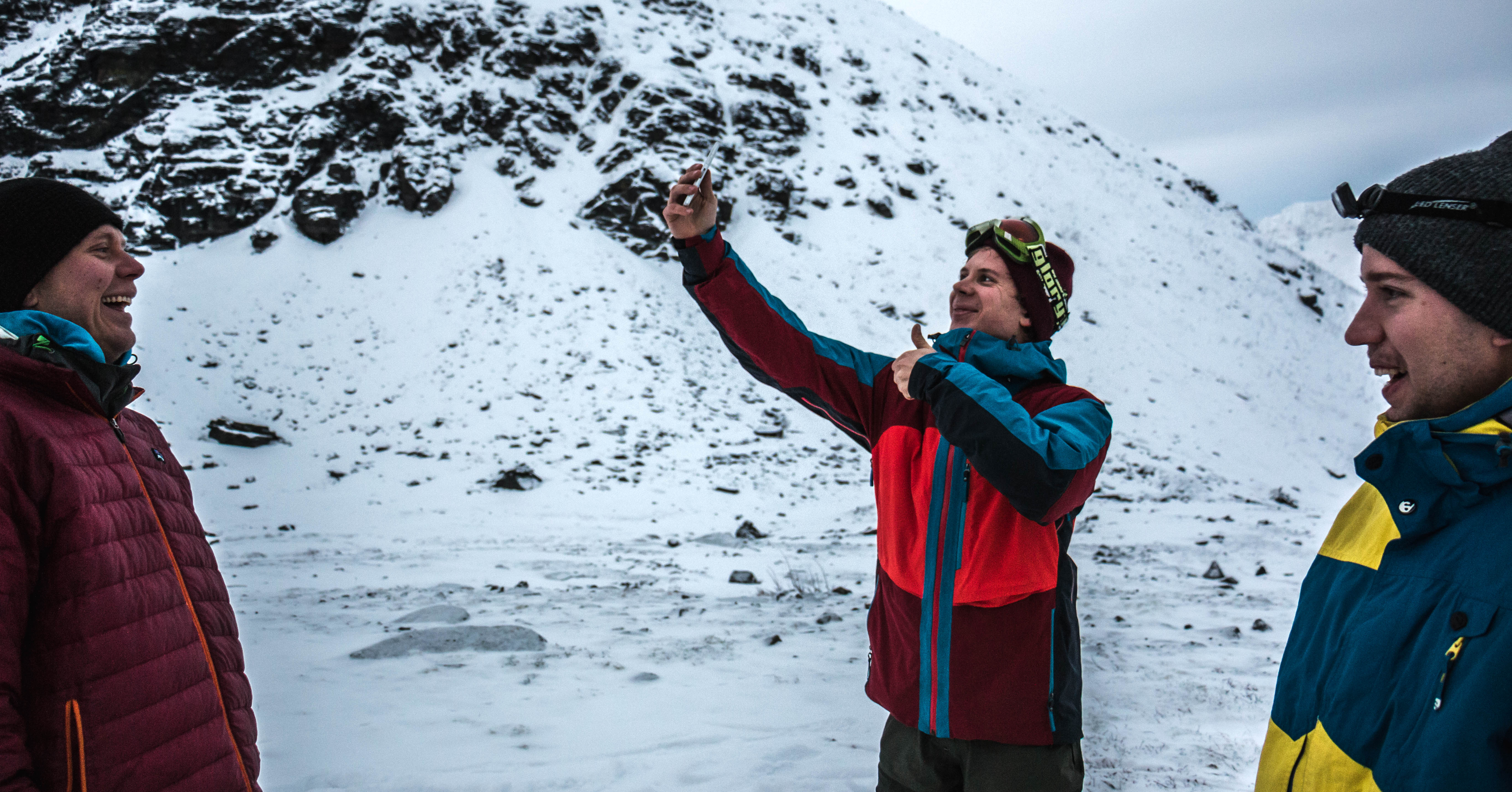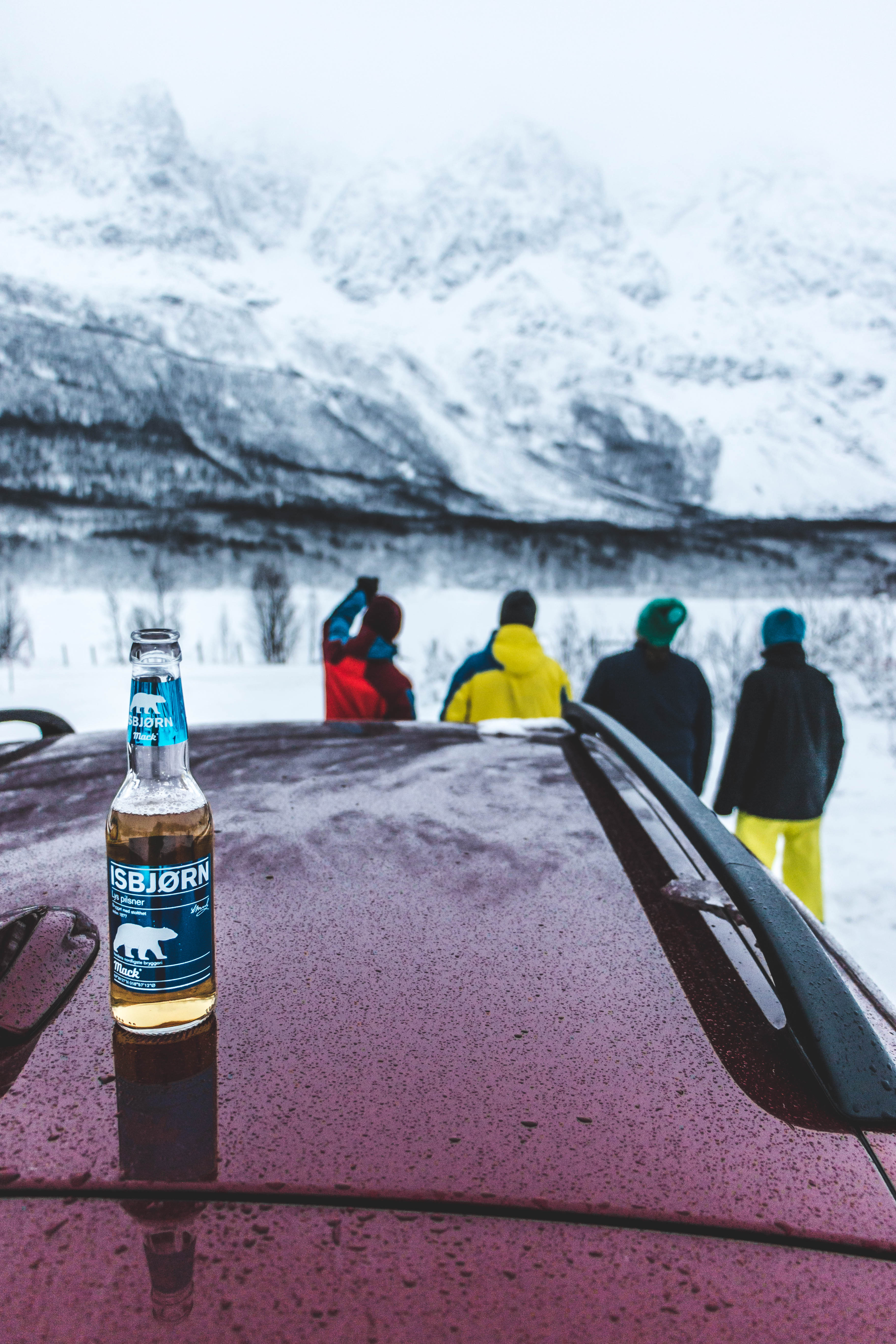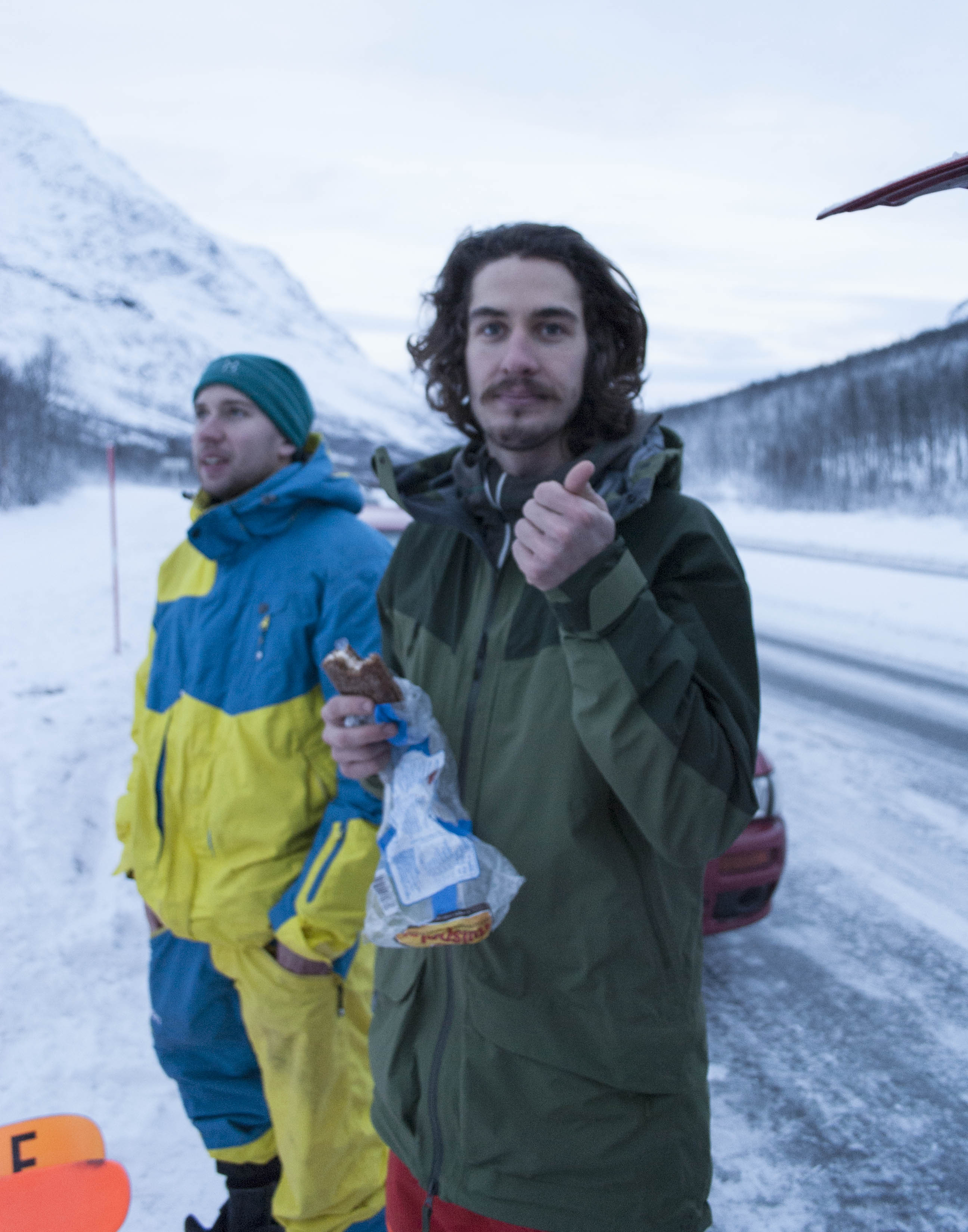 Ensimmäiset päivät menivätkin ajellessa ristiin rastiin Lyngenin seutua ja ottaessa pakkeja, joko johtuen huonosta lumitilanteesta tai kelistä. Isbjörn olut tuli tutuksi varsinkin Hylkeenpoiccaselle auton takapenkillä. Onhan se kiva ajella Norjassa ympäriinsä, katsella vuoria ja maistella olutta! Nettikin toimii nykyään tosi hyvin, mistä Ajelutiimi antaa ison peukun Soneralle!