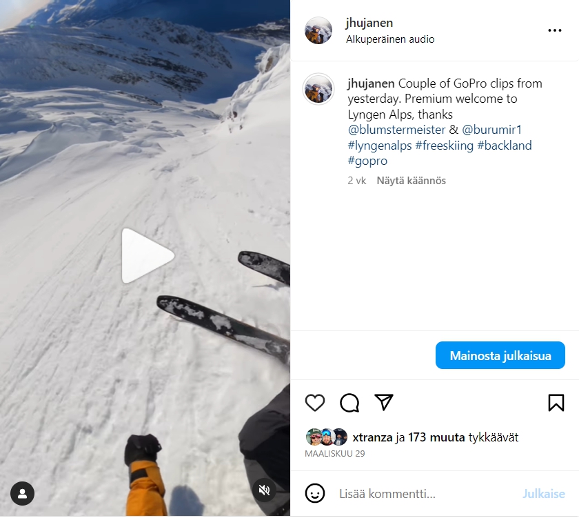 Lasku oli huippu ja kaasun sai painaa pohjaan heti alussa >>Linkki GoPro videoon
