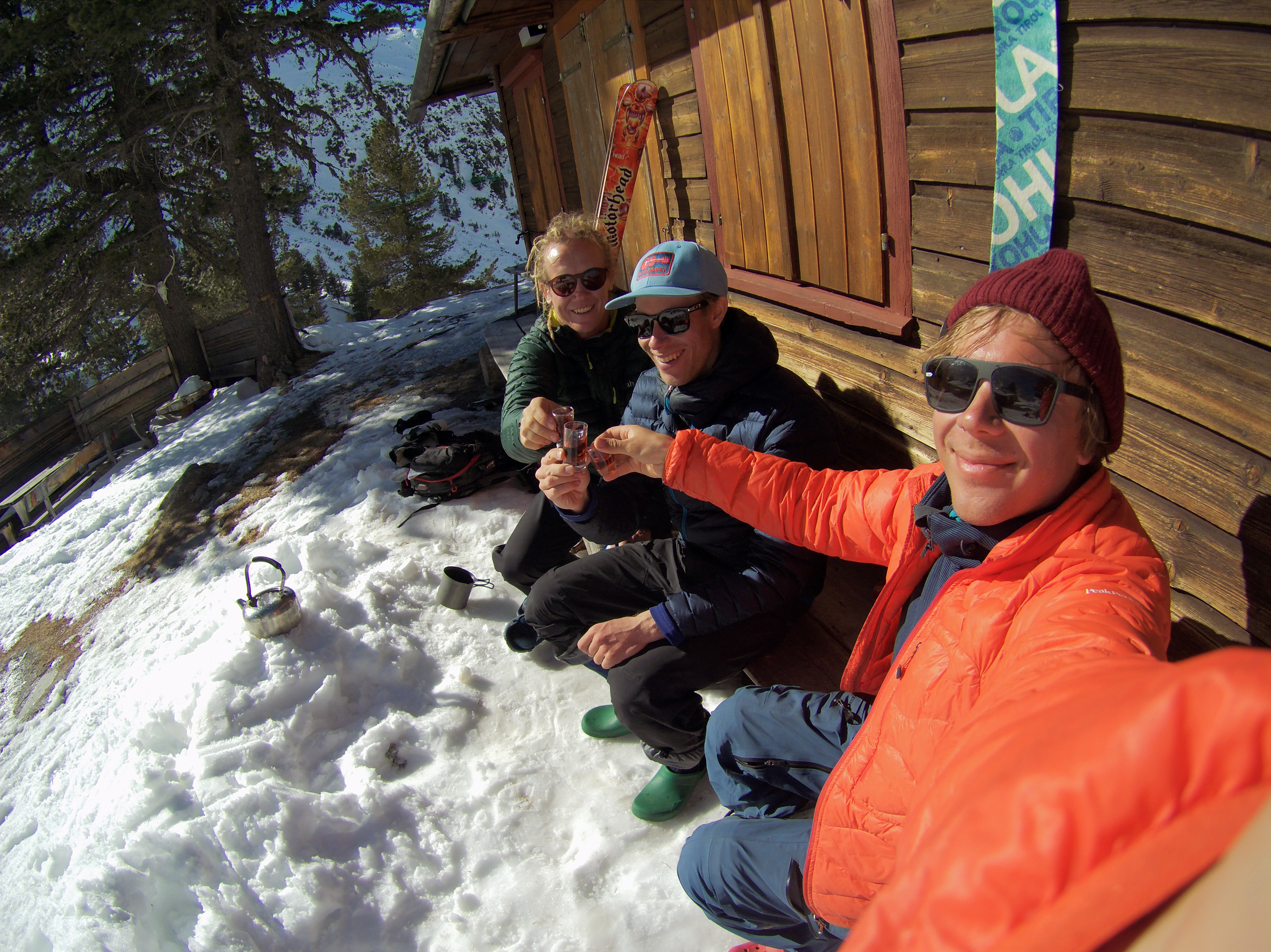 Seuraavat kaksi yötä vierähtivät hüttellä. Harmiksemme saimme todeta, että talvi ei ollut lumien osalta suosinut Naudersin aluetta. Vuoret olivat yllättävän kivisiä, joten laskiessa sai olla tarkkana. Löysimme silti mukavan keväisiä firnilaskuja ja pääsimme nauttimaan vuoristotunnelmasta. Hylkeeltä iso peuccu!