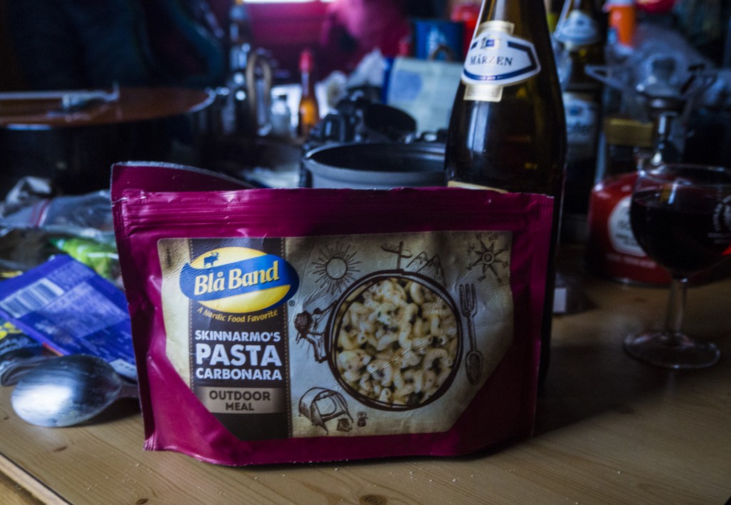 Hütten tarjonta miellytti poiccasia – reilusti viintä ja olutta. Ruokaa sentään ei ollut tarjolla, mutta onneksi olimme varautuneet omilla eväillä!