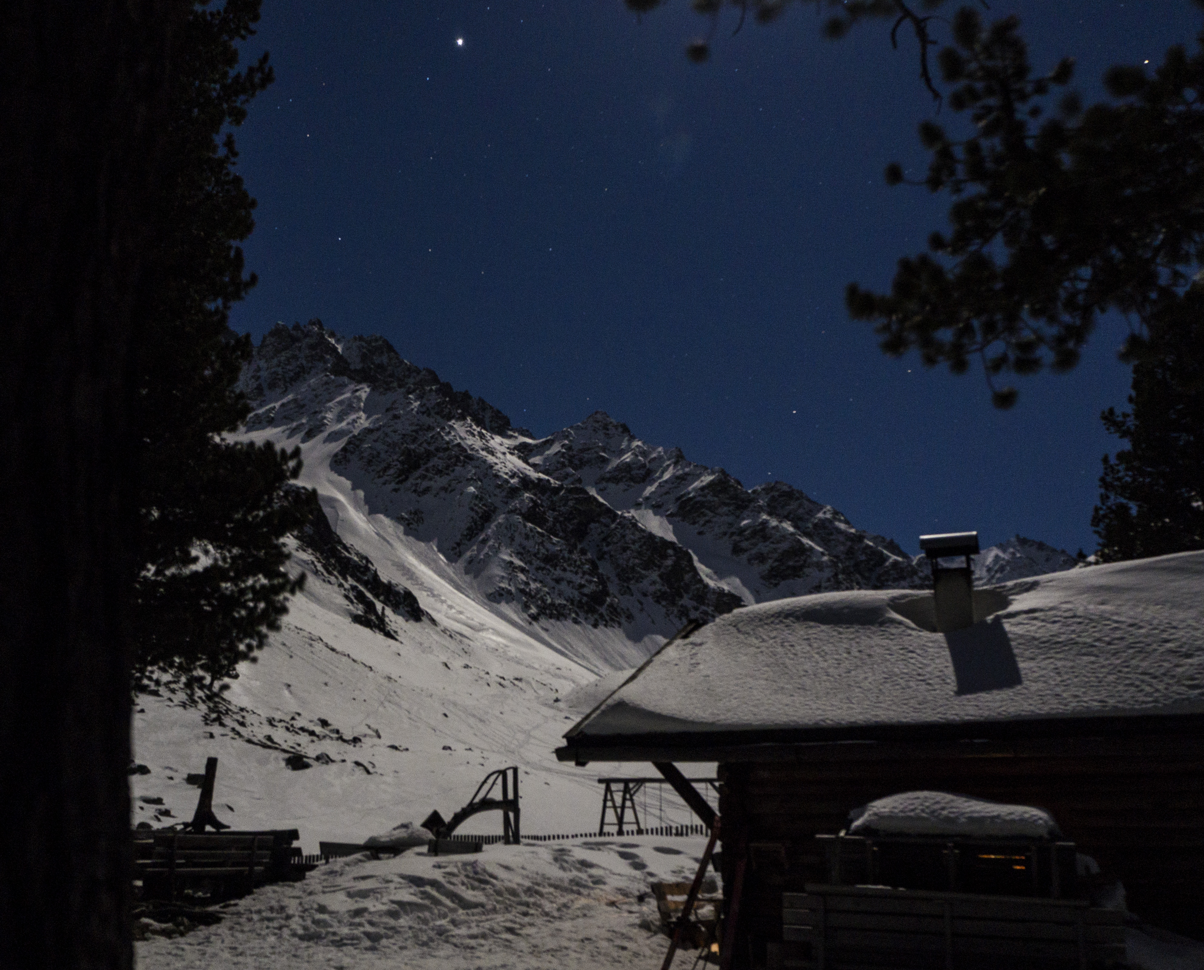 Kohteeksi valitsimme pienen winterraumin Naudersin laskettelukeskuksen läheltä. Itse hütte ei ole talvisin auki, mutta sen kupeesta löytyi eläimille sopiva ja mukavan lämmin winterraum.