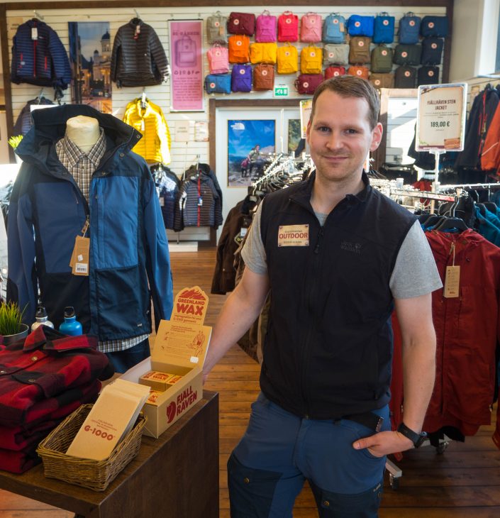 Aamuinen kahvihetki Kuninkojan takahuoneessa alkaa olemaan lopuillaan. Kävelemme myymälän läpi kohti ulko-ovea ja matkalla Niko tarkastelee myymälää yli 10 vuoden ulkoilualan kokemuksella. Harrastuksien ja pitkän ulkoilun asiantuntijan sekä myyjän uran kautta hankittu kokemus huokuu miehestä. Niko on selvästi valmiina uuteen päivään Kuninkojan myymälässä. Kuuleman mukaan edelleenkin työn suola on asiakaspalvelun mukana tulevat onnistumiset kun oman kokemuksen kautta pääsee auttamaan asiakkaita löytämään juuri oikeat vaatteet ja varusteet heidän omiin käyttötarkoituksiinsa. Lisäksi viihtyvyyttä Scandinavian Outdoorilla lisäävät työkavereiden kesken vallitseva hyvä tekemisen meininki ja Suomen neljä vuoden aikaa, jotka tuovat vaihtelua kausittain myymälän valikoimista löytyviin tuotteisiin.