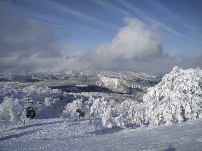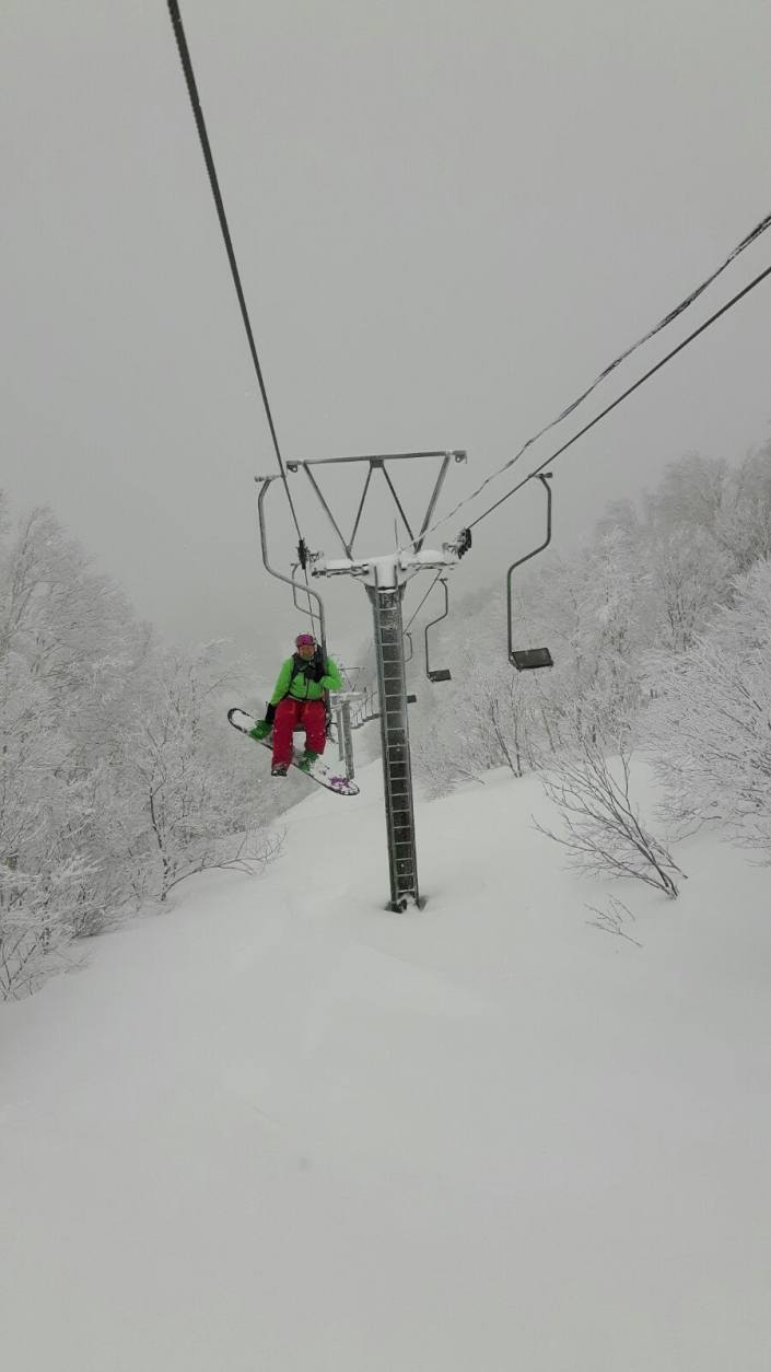Madarao Kogen, jännittävät yhdenhengen hissit huipulle. Aivan eeppisiä opastettuja offareita riitti ihan koko päiväksi. Kuva: Tuomas