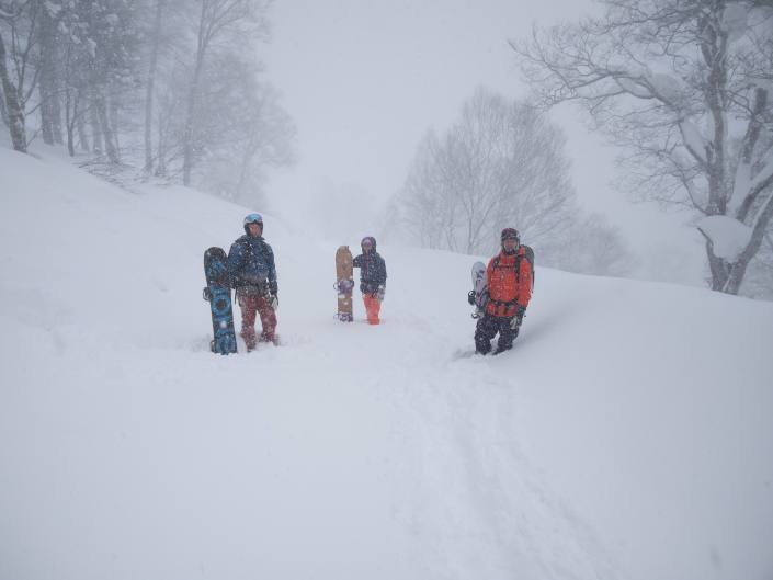 Nozawasta siirryimme Myoko Kogeniin, jonka alueella on useampi keskus ja jo ennen matkaa innostusta herättänyt Madarao vain 30 minuutin bussimatkan päässä. Pari ensimmäistä päivää laskimme Akakura Kankon keskuksessa, jossa vinkkien perustella oli parasta metsälaskua ja huipulla sopivan jyrkkää profiilia. Noina päivänä satoi lunta lähes metri, joten aamulla saimme pari huppulaskua keskuksen massiivisesta suosiosta ja viikonlopusta huolimatta.