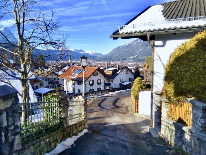 Valitsimme kohteeksi Garmisch-Partenkircenin hyvien kulkuyhteyksien vuoksi (…ja ehkä olimme myös hieman myöhään liikkeellä lentojen ja majoituksen suhteen). Garmisch on melko iso alppikylä (asukkaita 25 000) ja sinne on suora kulkuyhteys Munchenistä. Junaan sai ostettua ryhmälipun (Bayern ticket), mikä teki matkasta hyvin edullisen. Ensimmäisenä päivänä vieraillimme Garmischin tunnelmallisella joulutorilla ja nautimme makoisat glühweinit! Kaupunki tarjosi mukavaa joulutunnelmaa musiikin, joulukadun ja luistelukentän ansiosta. Hintataso oli saksalaiseen tapaan edullinen, esimerkiksi iso ruoka-annos maksoi 13 e hyvässä ravintolassa.