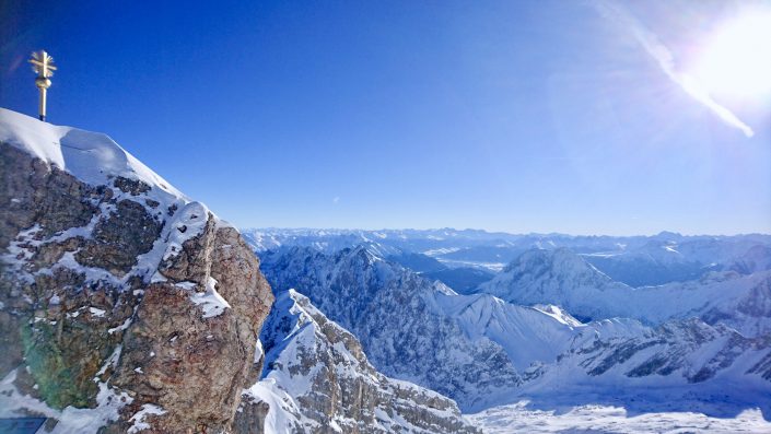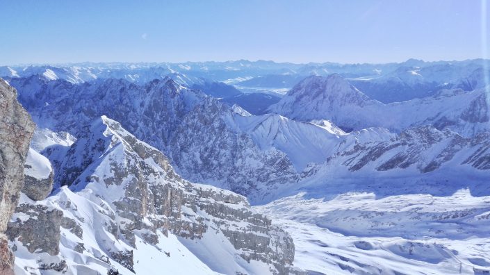 Saksan korkein vuori Zugspitze (2962m) sijaitsee aivan G-P tuntumassa ja gondolin ala-asemalle, Eibseelle, pääsee kätevästi junalla(25min). Lippu ylös kustantaa 45 euroa (juna kylästä kuului hintaan) tarjoten kerrassaan mahtavat maisemat yli Alppien. Rinneravintolassa voi nauttia kupin kaakaota ja nauttia letkeästä tunnelmasta. Tällä alueella sijaitsee toinen Garmischin laskettelualueista ja siellä pystyy laskettelemaan pitkälle kevääseen.