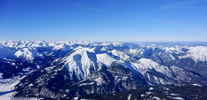 Ei reissua ilman huiputusta! Viimeisen päivän aamuna valoitimme Wankin. Puolentoista tunnin kävelyhölkkä ylös takasi upeat maisemat yli vuorten. Vaelluspolut oli hyvin avoinna lumesta huolimatta ja paluu matkalla moroteltiinkin useamman saksalaisen kanssa.
