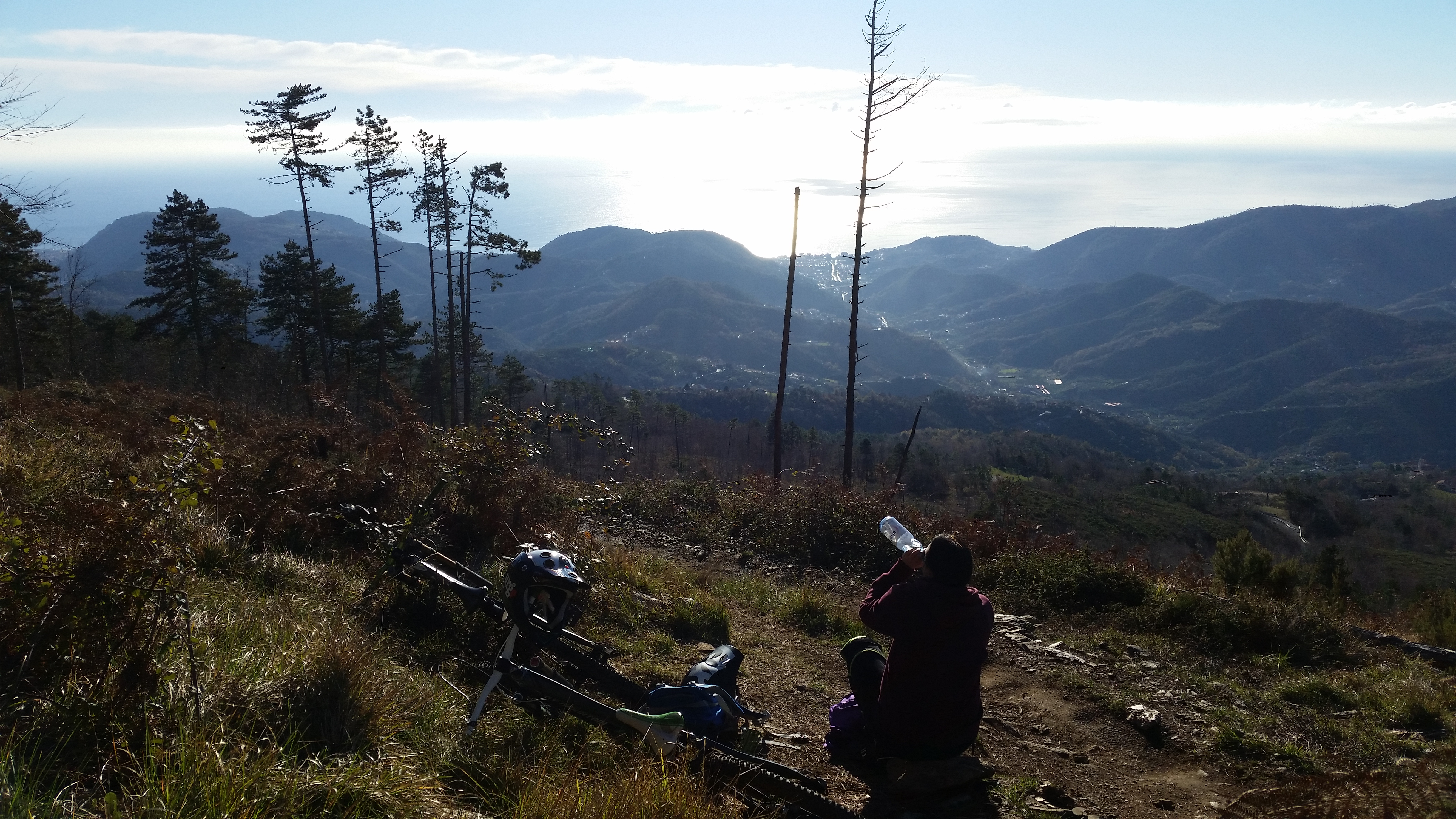 Omat ulkoilut olen pääasiassa suorittanut pyörän kanssa. Ensimmäinen pari viikkoa meni pääasiassa paikan valtavaan tarjontaan tutustuen. Nyt alkaa olla jo aika selkeät kuviot sen puolesta, missä on itseä kiinnostavaa ajoa. Ja sehän on selkeästi Nato Base ja Orco Feligno nimisen kylän yläpuolinen harjanne. Nato Baselle tulee reilu 1000 verttiä nousua ja sinne ollaankin yleensä menty autokyydillä. Eliaksen päiväunien aikana kerkeää näppärästi ajaa useamman vedon ja sitten ku hän herää, mennään yleensä vielä yksi nousu ja minä sitten ajelen omaa tahtia kotiin fillarilla ja Margit sekä Elias autolla. Sen lisäksi “kotipolku” La Briga, yksi EWS-kisojen erikoiskokeista, on yksi suosikeistani. Myös Caprazoppa nimiseltä mäeltä tulee ainakin yksi hieno ja jyrkkä polku alas, sen löysimme kaverin kanssa “pienen” suunnistusvirheen ja pyödälle unohtunaan kartan ansiosta. Onneksi täällä ei voi joutua lopullisesti eksyksiin. Jos menee alaspäin, tulee pakolla jonkin laakson pohjalle joissa kaikissa kulkee tie. Sitä alamäkeen seurailemalla pääseekin sitten meren rantaan ja takaisin kylille. Tai sitten voi tietty hankkia gps-vehkeet tai muistaa ottaa kartan mukaan. Mutta pitäähän elämässä seikkailua olla?