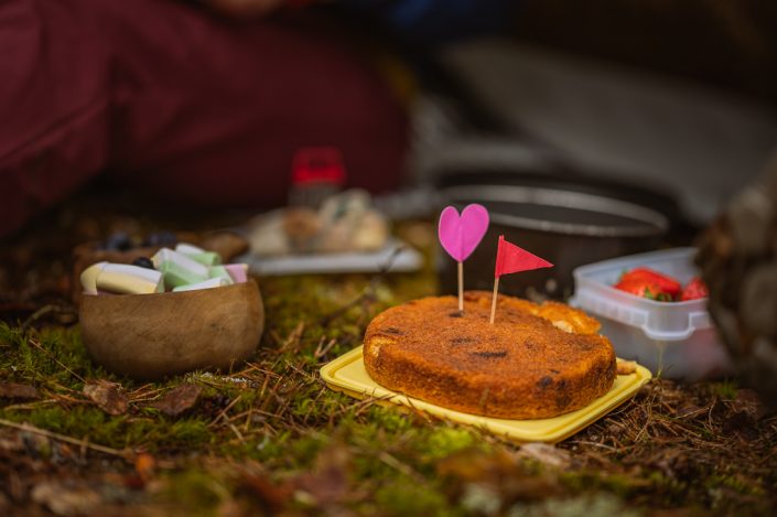 Juhliin usein kuuluu olennaisena osana jonkinlainen kakku. Tämä retkikakku on helppo valmistaa retkellä kavereille yllätykseksi tai vaikka tulevana sunnuntaina ilahduttaa äitiä äitienpäivän kunniaksi. Kakun ainekset mitataan ja pakataan kotona jo valmiiksi, retkellä ainekset sekoitetaan yhdeksi taikinaksi ja paistetaan retkikeittimestä tehdyssä uunissa.