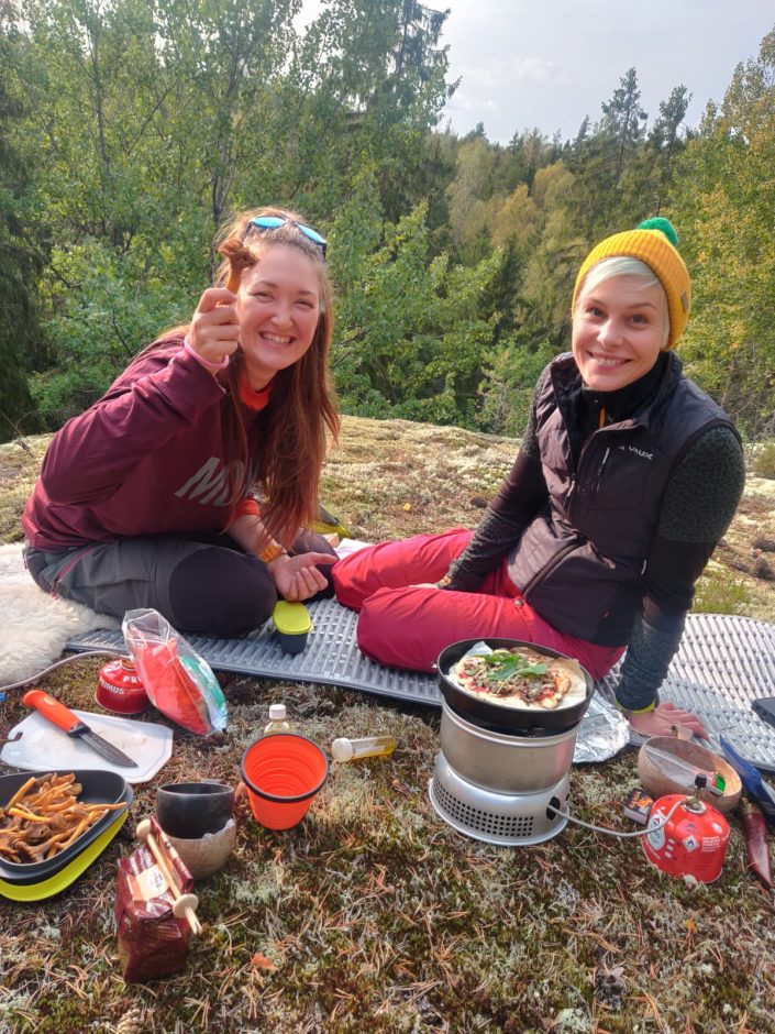 Miten olisi pizzahetki vaihteeksi laavulla tai vaelluksen herkkuillallisena? Luontohaasteen Ella ja Kaisa kokkasivat retkiruokalivessä pizzaa Trangialla, tässä tulee resepti: