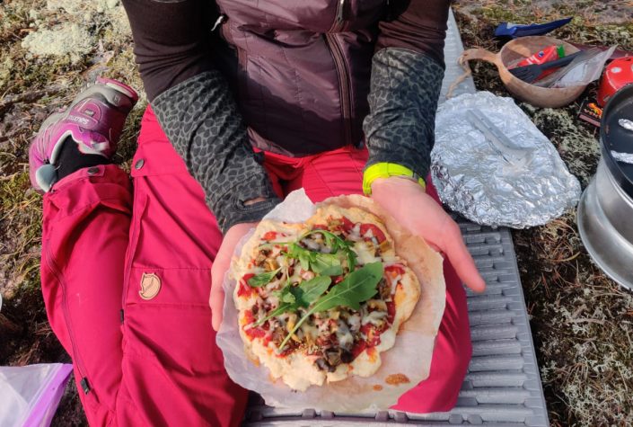 Miten olisi pizzahetki vaihteeksi laavulla tai vaelluksen herkkuillallisena? Luontohaasteen Ella ja Kaisa kokkasivat retkiruokalivessä pizzaa Trangialla, tässä tulee resepti: