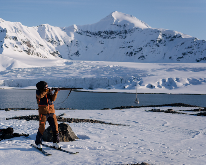 Kivääri ja untuvatakki – molemmat melkein yhtä pakollisia varusteita Huippuvuorilla