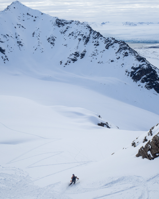 Huippuvuorissa on Norjaan tottuneellekin laskijalle paljon opeteltavaa. Kivääri painaa repussa ja vie tasapainon laskiessa. Aurinko paistaa yölläkin niin voimakkaasti että myös pohjoisseinämät lämpenevät kauttaaltaan ja odotettu puuteri onkin muuttunut korpuksi. Valtavien jäätiköiden ansiosta jäätikkövarusteita saa kantaa mukana useammin.