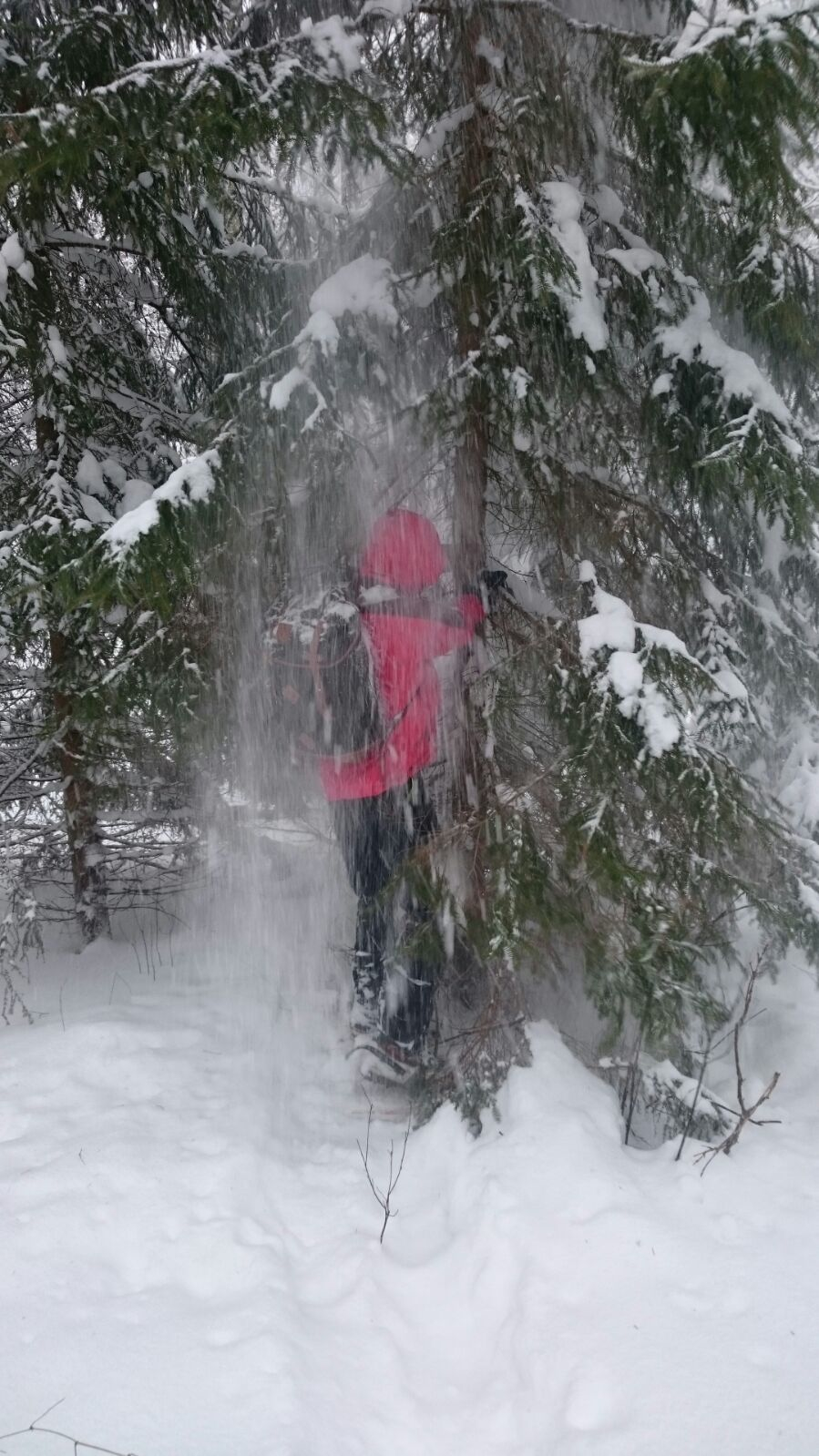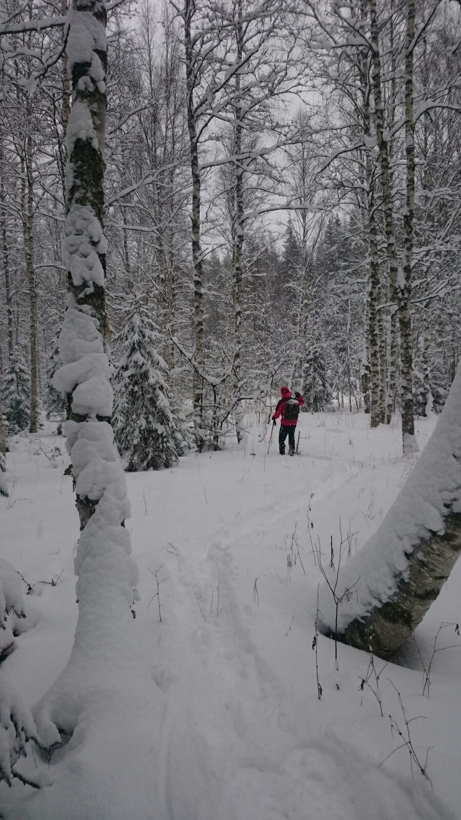 Eräänä sunnuntaiaamuna kun silmäni sain auki, katsoin ulos ja siellä tuli lunta taivaantäydeltä, soitin samantien hyvälle ystävälleni ja hoputin pakkaamaan repun ja ottamaan lumikengät kainaloon. Mikä sen hienompaa kuin päivä syvässä lumessa keskellä talvista metsää lumikenkien kanssa?