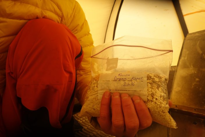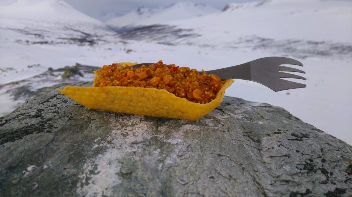 “Oman retkiruokarytmin ja tyylin löytäminen vie aikaa. Virheistä oppii ja kokemuksen myötä ymmärtää myös oman kehon toimintaa vaelluksilla. Aloittaessani aktiivisempaa retkeilyä söin melko yksitoikkoisesti pussipastoja ja muita valmisruokia. Ajan kuluessa ja uusia retkiystäviä tarkkailtuani havahduin siihen, että retkillä voi syödä myös tosi paljon muuta kuin valmisruokia ja ruoanlaittoon voi olla myös oikein mukavaa ajanvietettä retkellä. Retkiruoka ei itse asiassa ole mitään rakettitiedettä, sillä retkeillessä pystyy syömään hyvin pitkälle samaa ruokaa kuin kotona. Kyse on vain ajatusmallin kääntämisestä, fokuksen siirtämisestä ennen kaikkea etukäteisvalmisteluun. Muista aina napata mukaan joku extraherkku, jonka voi yllärinä sopivassa tilanteessa jakaa muun retkiporukan kanssa!”