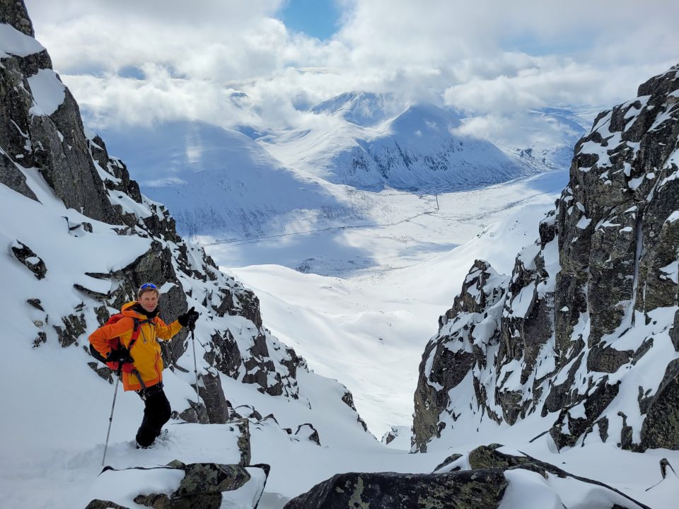 Harva laskukaveri olisi sitä mieltä, että parin tuhannen nousumetrin jälkeen skinnailu vielä kiinnostaa, mutta Jonna oli kiinnittänyt katseen Storgaltenin viereiseen Litjegalteniin ja lumi näytti hyvälle, joten mikäpä ettei. Bonusmäki olikin erinomainen.