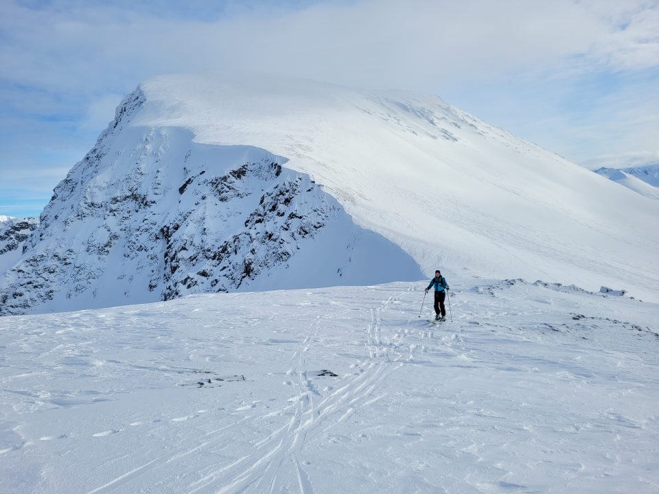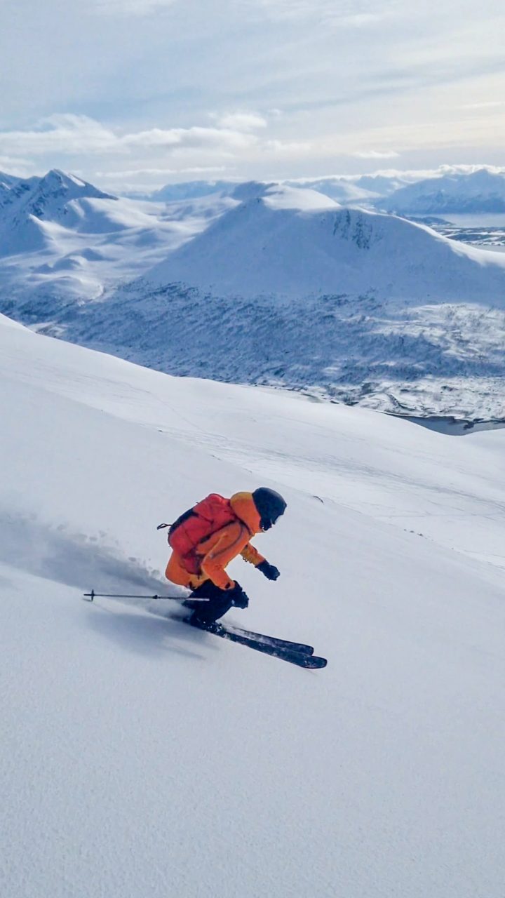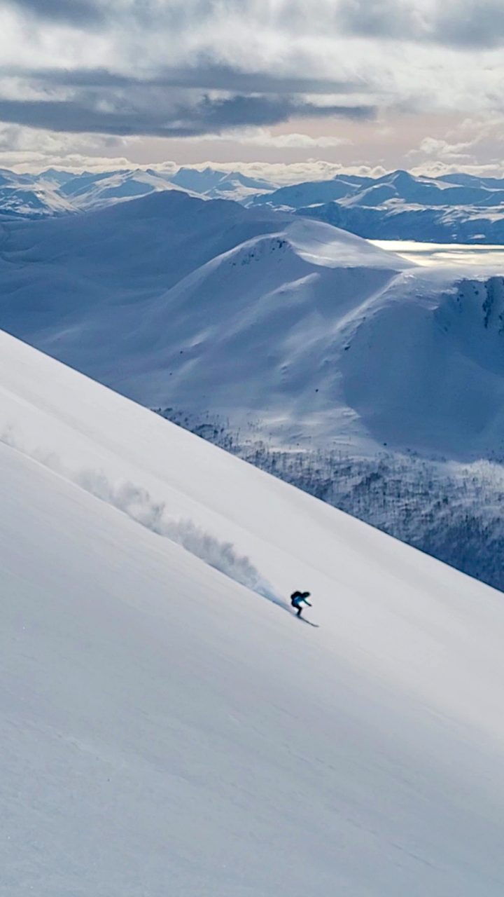 Terveisiä Lyngenin pohjoiskärjestä! Matkaan lähdettiin alkuviikosta matkailuautolla ja suuntana tietysti pohjoinen. Ensimmäinen yö herätti minut ja Jonnan kylmyyteen tienvarsiparkissa Lapin rajalla. Pienet säädöt auton kaasulämmitykseen ja homma alkoi pelaamaan. Aikainen aamuviiden herätys palkitsi Kilpisjärvellä, jossa oli mahdollisuus iltapäivälaskuille. Kilpisjärven Keisarin vinkeillä löytyi mukavaa baanaa laskettavaksi Jehkaksella. Parin mäen jälkeen oli aika miettiä seuraavaa liikettä. Soitto Blumille ja nokka kohti Kvaløyan saarta Tromssan pohjoispuolella.