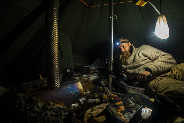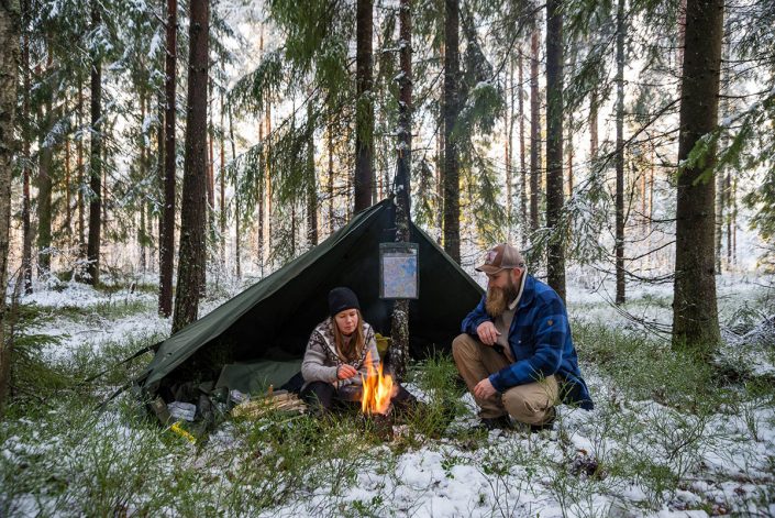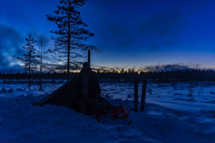 Telttailemassa Patvinsuon kansallispuistossa joulukuussa 2017.