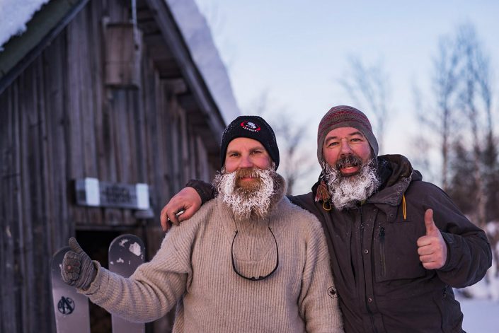 Iloiset kuurapartaveikot löysivät autiotuvan 9-päiväsellä talvivaelluksellaan. Vasemmalla itse kirjoittaja ja oikealle Peter (aka. Crazy Swedish Laplander).