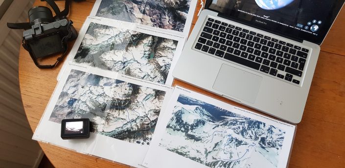 Satelliittikuvat vahvistivat ajatustamme siitä, että reitti läpi vuorten olisi mahdollinen. Pahimmat ja repaleisimmat jäätiköt olisivat kierrettävissä ja vuorten huippujen väleihin jäisi ylitykseen sopivia solia. Tai näin ainakin suunnittelimme.
