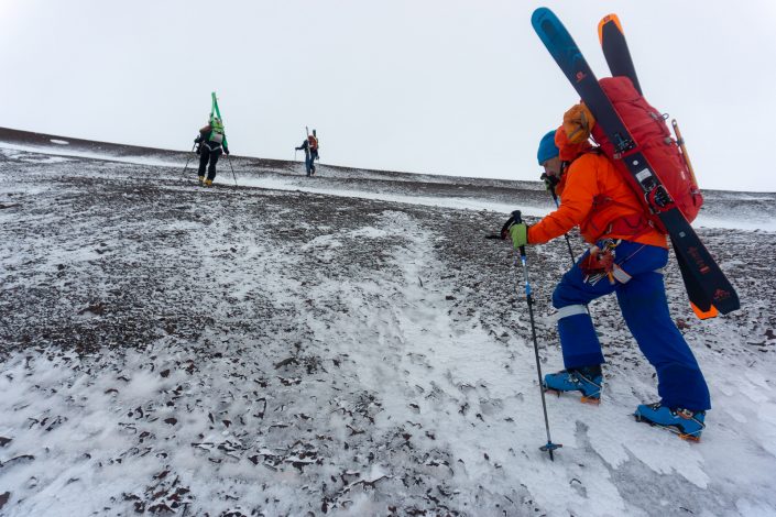 Navigointia kohti laakson pohjaa, jäätiköiden vetäytymisreiteillä saattaa olla yllätyksiä… Onneksi tästä selvittiin ilman vesi/jääputouksia
