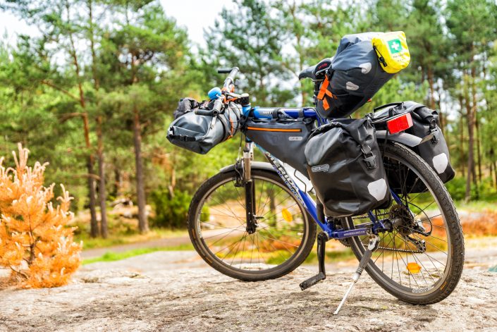 Bikepacking-malliston laukuissa ohjaustankoon ja satulan taakse kiinnitettäviin laukkuihin pakkaan kevyttä, kompressoituvaa vaatetta ja makuupussin. Runkoon kiinnyttävään laukkuun laitan painavaa varustetta, sekä tavarat, joihin pitää päästä nopeasti käsiksi.