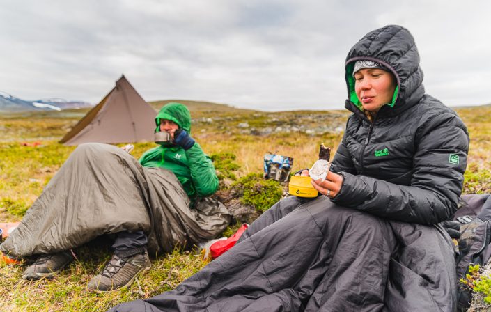 Kevyteristetakki toimii lisäeristeenä myös nukkuessa makuupussin sisällä tai sitä voi käyttää tyynynä. Saat kätevän tyynyn pakkaamalla takin huppuunsa, tuubihuivin sisälle tai voit käyttää kuivapussia.
