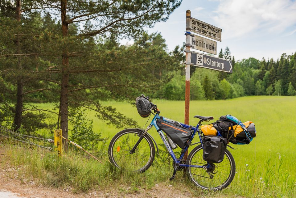 Voit myös yhdistää melonnan ja pyöräilyn. Tässä kuvassa ollaan menossa juhannukseksi saareen yöksi.