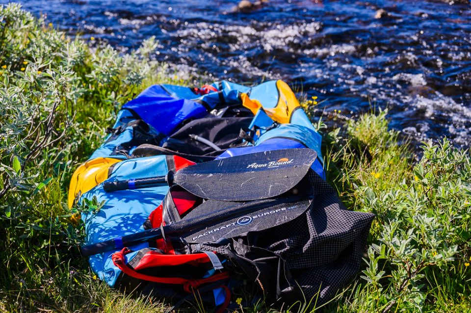 Mieti tarkkaan mitä varusteita oikeasti tarvitset mukaan, millä valinnoilla säästät painoa ja pakkaustilaa. Ota kuitenkin aina mukaasi ensiapuvälineet, turvallisuusvarusteet melontaan ja myös korjaustarvikkeet packraftin korjaukseen.