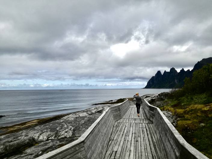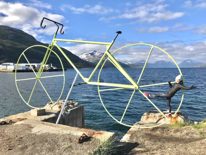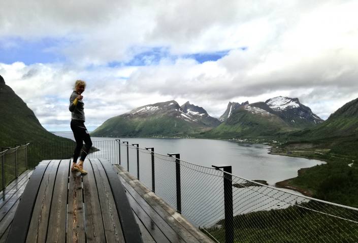 Senjan saari oli yksi viimeisimmistä kohteista! Pohjoispuolisko oli aivan älyttömän upea paikka korkeine vuorineen ja jylhine rantoineen! Tie Hamnista Bothamniin oli täynnä valloittavia eväspaikkoja ja jännitystä luovia tunneleita. Pyöräilijöitä oli paljon liikkeellä!