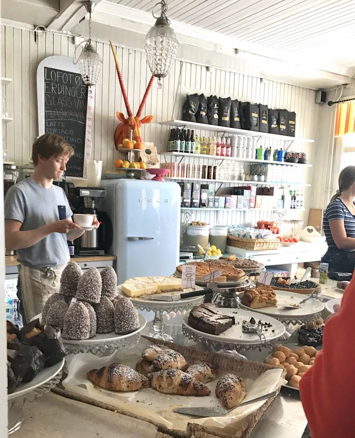Henningsværin kalastajakylä oli vertaansa vailla. Lofoottien Venetsiaksi kutsuttu kaupunki oli täynnä komeita puutaloja, suloisia kahviloita ja rentoa menoa. Paikka on kiipeilijöiden suosiossa läheisten kiipeilymestojen vuoksi. Kävimme fikailemassa “Lysstøperi og Cafe” -kahvilassa, joka vei voiton tarjonnan ja tunnelman voimalla.