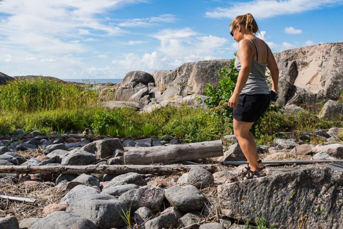 Läheltä leirintäaluetta löytyy luontopolkuja, joita kävimme tutkimassa. Vehreys oli vielä elokuussa kosteikoissa lumoava. Keväällä saariston herääminen talviunestaan on myös vaikuttava kokemus, mikä kaikkien pitäisi päästä kokemaan.