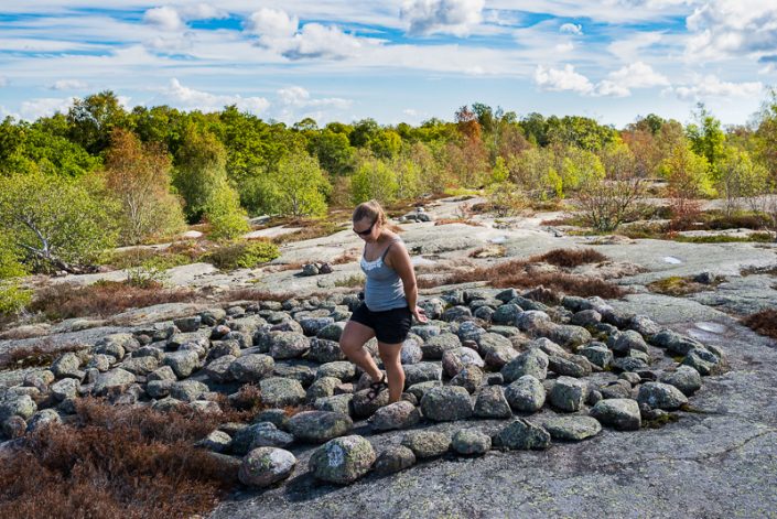 Meillä oli mukanamme kevyt, pieneen tilaan pakkautuva teltta. Tällä kertaa päätimme kuitenkin nukkua kallion päällä ilman majoitetta, vain ilmatäytteinen makuualusta allamme. Pieni tuulenvire karkotti hyttysetkin, joten tämä on mahtava tapa nukkua yöllä, jos ei tarvitse pelätä vesisadetta.