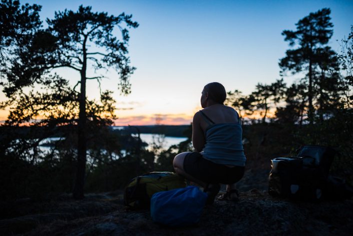 Saaristossa on paljon avaria paikkoja, joissa pääsee nauttimaan auringonlaskuista. Olimme jo etukäteen löytäneet kartasta kallion, jonne menimme katselemaan, kun aurinko painui horisontin taakse.