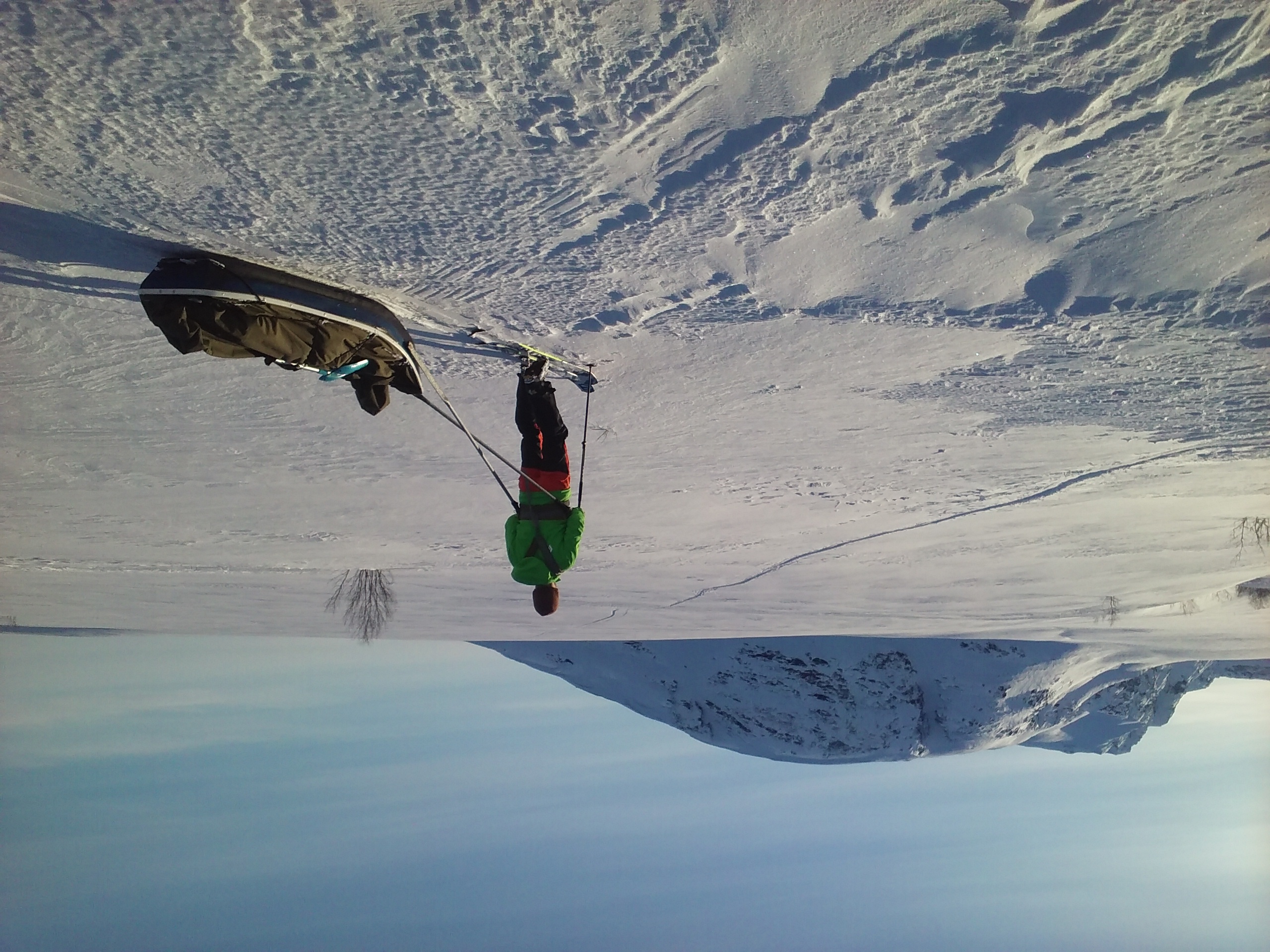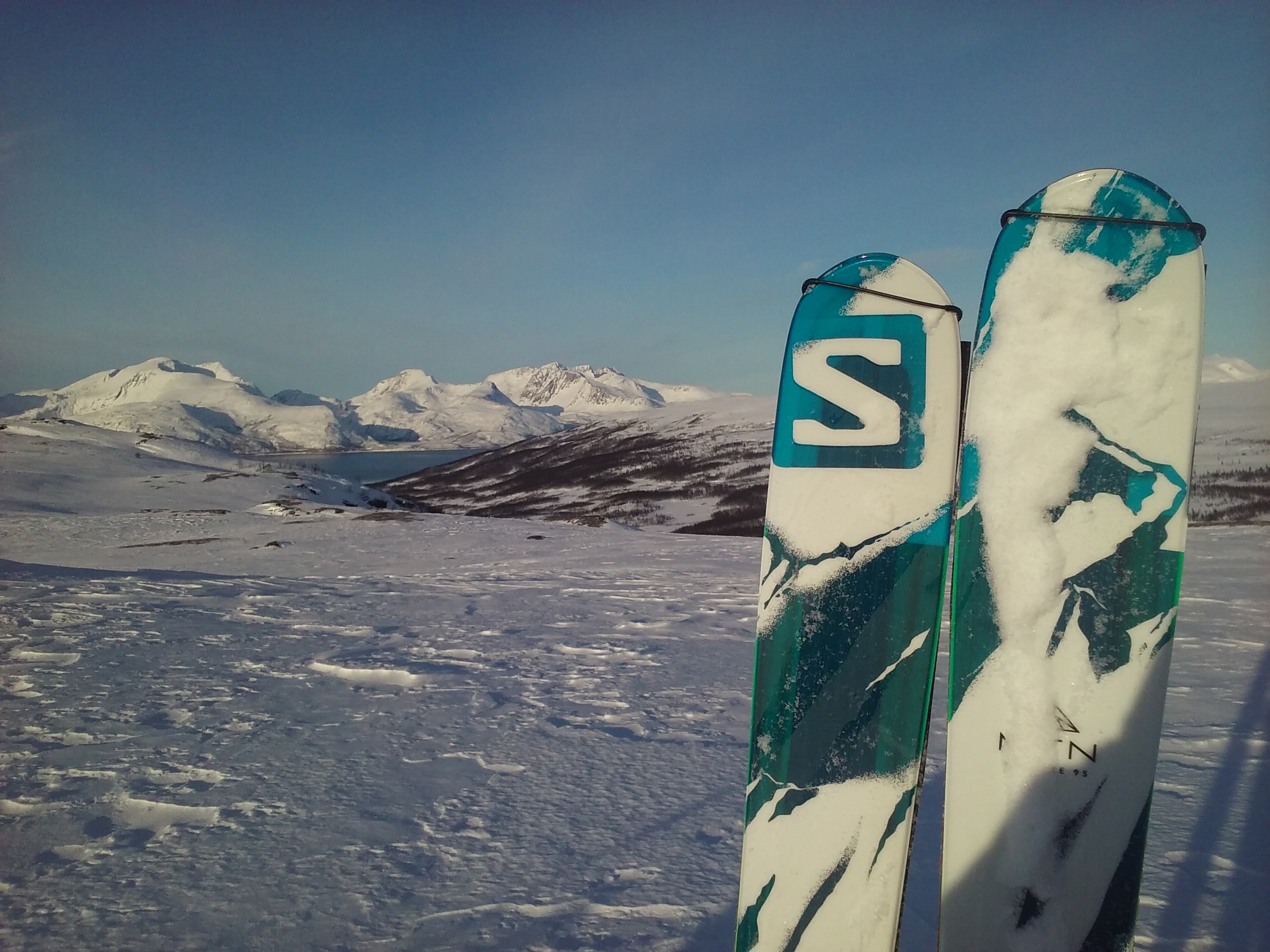 Suksiksi matkaan lähtee Salomonin Mountain Explore 95 Black Diamondin skineillä sekä Dynafitin siteillä. Monoiksi valikoituivat La Sportivan Spectret. Tällä yhdistelmällä onnistuu ahkion veto, skinnailu sekä laskeminen. Spectret soveltuvat kohtalaisesti (tai siitä otetaan selvää) myös kiipeilyyn, joten homma toimii vielä siinä vaiheessa kun on aika iskeä sukset kiinni reppuun, jääraudat monoihin sekä vaihtaa sauvat hakkuihin. Sauvoina meillä on Lekin sekä Black Diamondin kepakot sekä mukana yksi ylimääräinen sauva niiden hajoamisen varalta. Erillisiä kiipeilykeikkoja varten mukana ovat vielä Tubbsin kevyet FlexAlp -lumikengät.