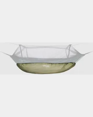 Bushmen Glow -12 Underquilt kiinnitettynä riippumattoon.