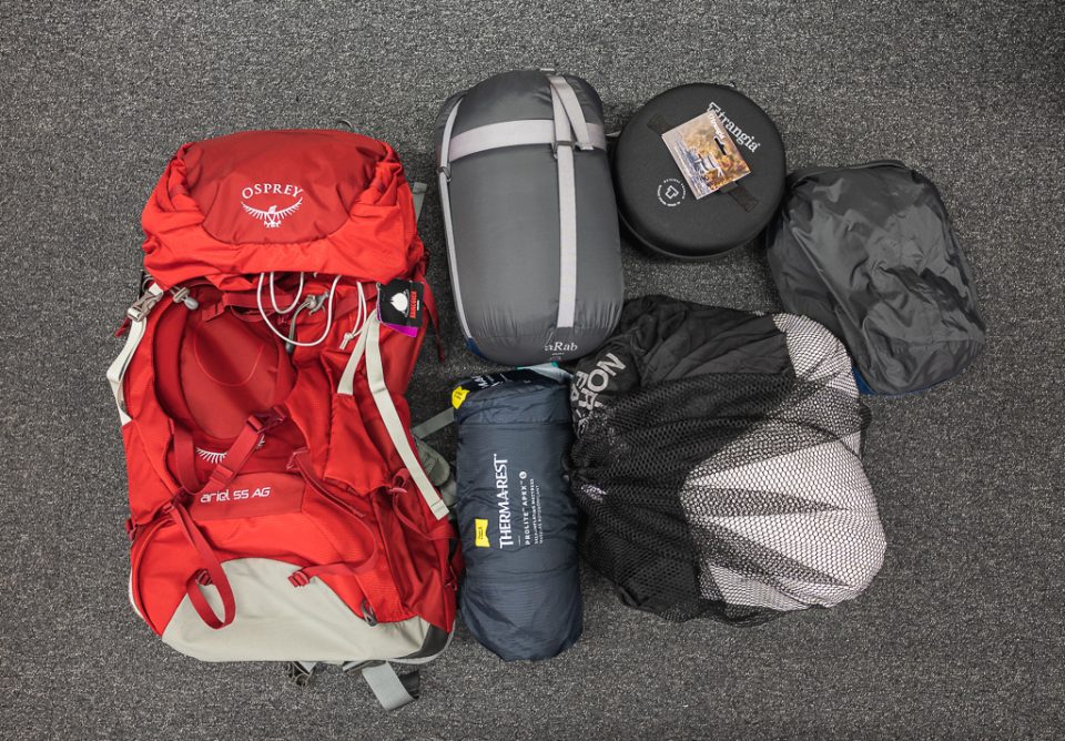 Ospreyltä löytyy naisille suosittu Ariel-rinkkasarja ja miehille vastaava Aether-sarja. Tämän kokoluokan rinkat ovat naisilla suosittuja, mutta aloittelijan isoimmilla varusteilla, yksin vaeltaessa voi tulla tilanpuutetta. Rinkka näyttää todella isolta, koska se on muodoltaan “litteä”, kaareva ja leveä. Tämä auttaa siirtämään painopistettä lähemmäksi selkää, missä sen pitääkin olla.