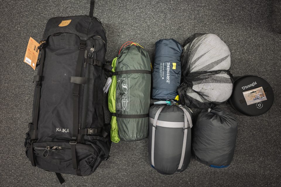 Mikäli makuupussia ja makuualustaa pienentää pakkauskooltaan, saa sisälle vielä mahtumaan pieneen tilaan pakkautuvan teltan.