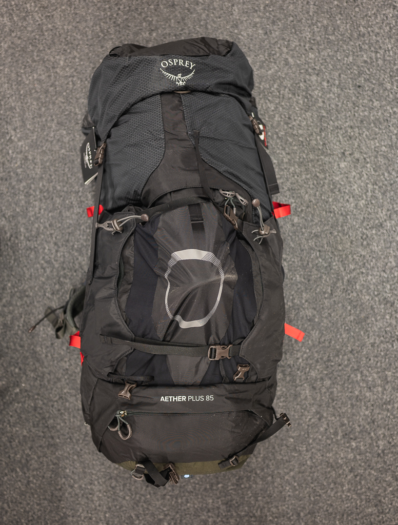 Muhkuraiseksi pakattu Osprey Aether Plus 85.