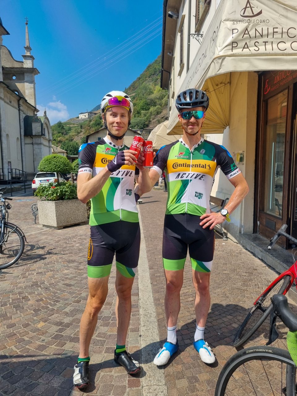 Aamuherätyksen jälkeen hiihtoneuvos Kari Varis tuli pyörällä Livignosta Bormioon ja startattiin kohti Tiranoa. Alkumatka menee mukavasti loivaan alamäkeen ja ennen Livignoa vastassa on 1884 nousumetriä Forcola passille. Jalat saatiin totutettua ylämäkiajoon ja lenkin jälkeen pizza maistui!