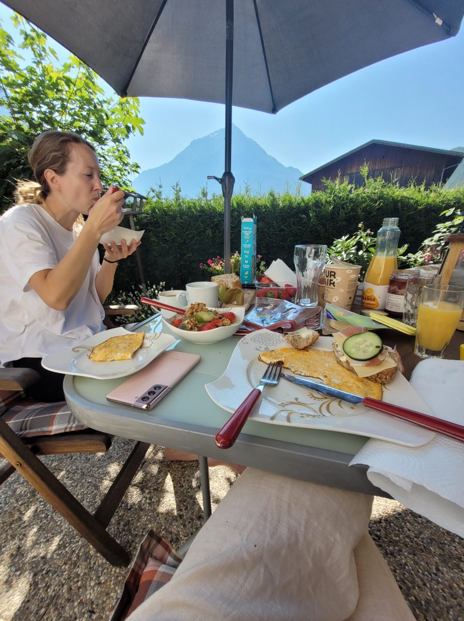 Loppureissuksi siirtyminen Itävaltaan ja aamupalaa Söldenissä