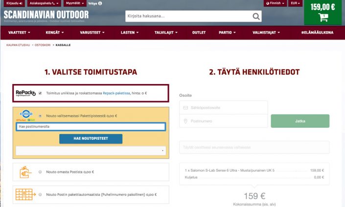 1) Tilaa tuote verkkokaupastamme ja valitse toimitustavaksi roskaton Repack-pakkaus.