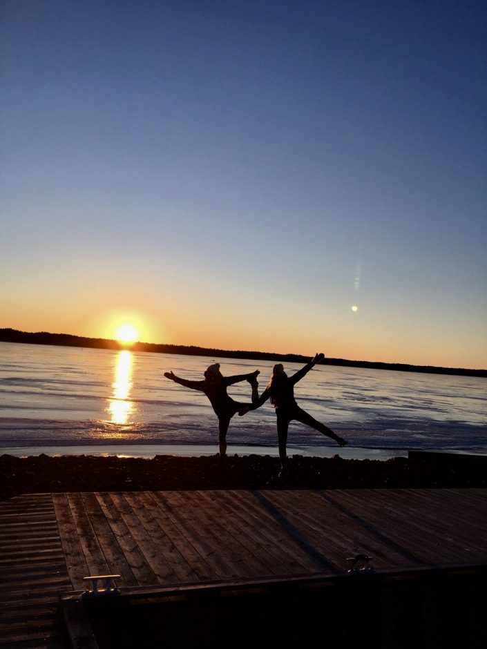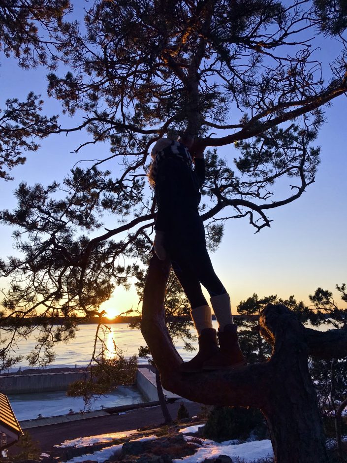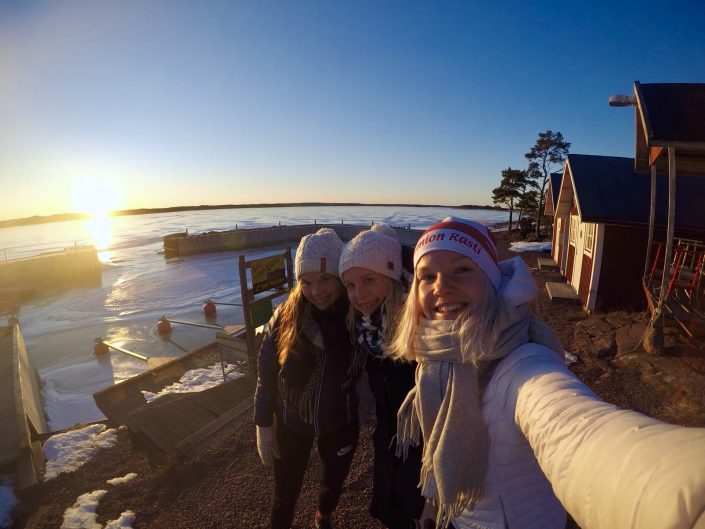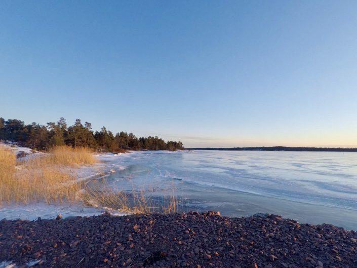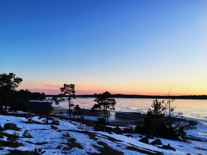 Saaristo oli talvellakin kuvan kaunis. Miljan ja Emman kanssa käytiin nauttimassa auringonlaskusta ja kevätjään loisteesta.
