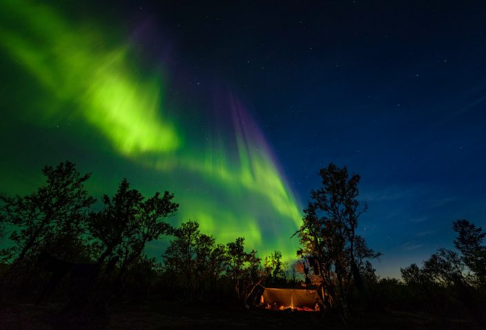 Ehkä tämä kuva selittää, miksi rakastuin syksyyn juuri vaellusta ajatellen. Elämäni ensimmäinen “oikea” vaellus oli juuri syksyllä, parhaaseen ruska-aikaan. Minulla kävi vielä todella hyvä tuuri ilmojen suhteen ja päivällä sai nauttia 20 asteen lämmöstä ja sinisestä taivaasta. Yöllä sai ihastella revontulia lähes kyllästymiseen asti.