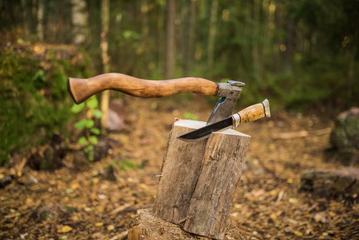 Harrastan vanhojen kirveiden kunnostusta ja keräilyä. Teen myös puukkoja, jos niin saa sanoa, koska ostan terät valmiina. Näitä kaunokaisia onkin kiva päästä testailemaan tulipaikoille, kun en omaa metsää omista.
