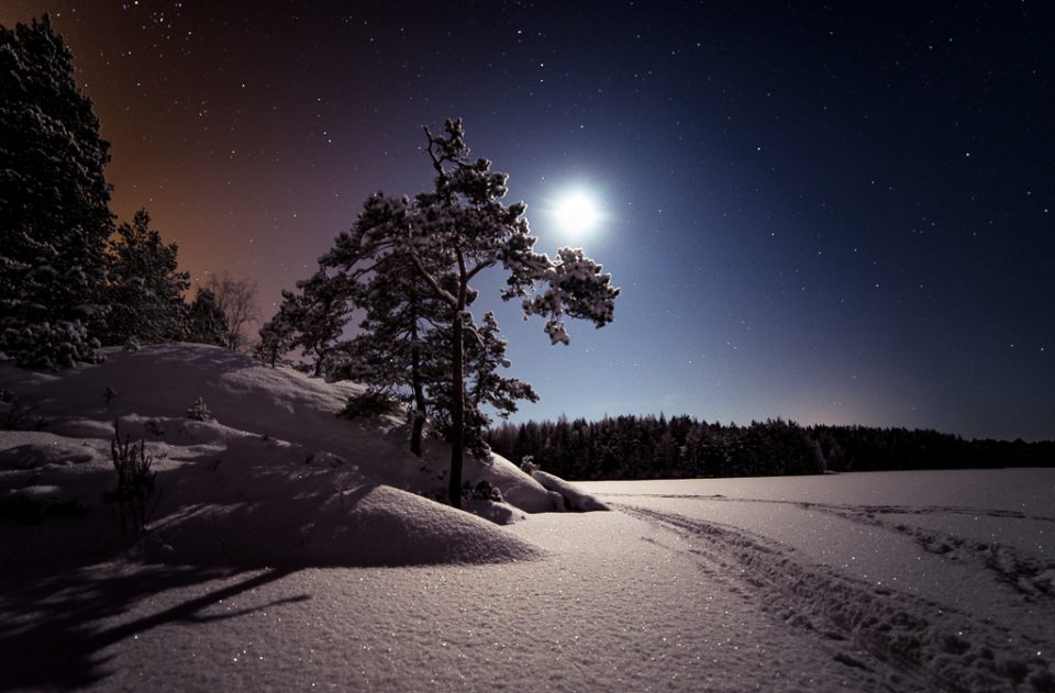 Tammikuussa kannattaa varautua pimeyteen otsalampulla, mutta mikäli olet onnekas, voi pilvetön taivas ja täysikuu luoda valoisankin yön.