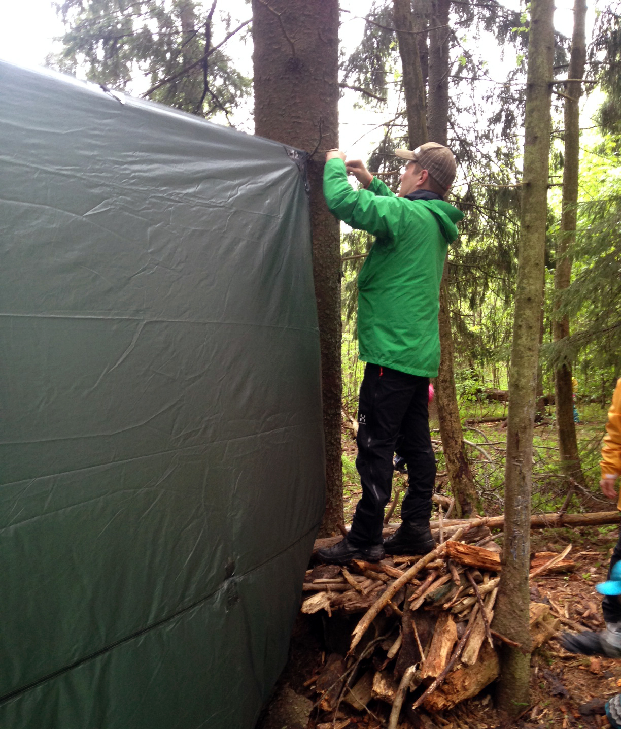 Jussi pystyttämässä DD:n Tarppia.