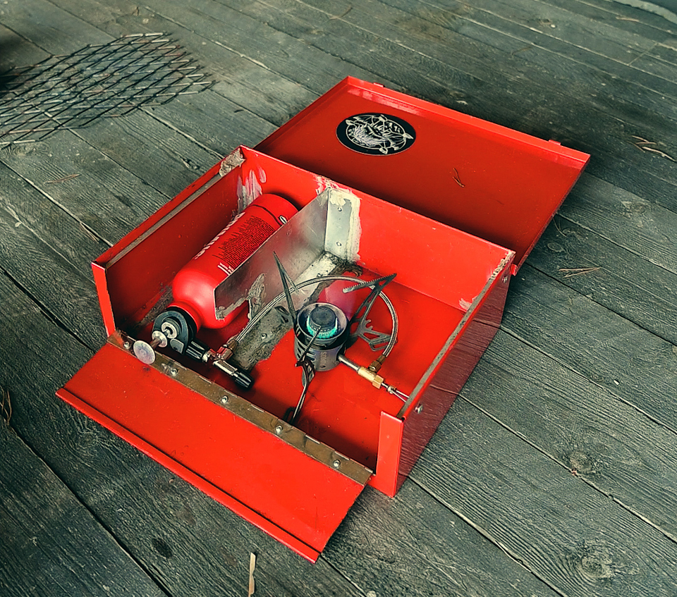 Monipolttoainekeittimen kanssa kannattaa käyttää keitinlaatikkoa. Laatikko antaa keittimelle tasaisen, palamattoman alustan ja laatikon voi hätätapauksessa sulkea.