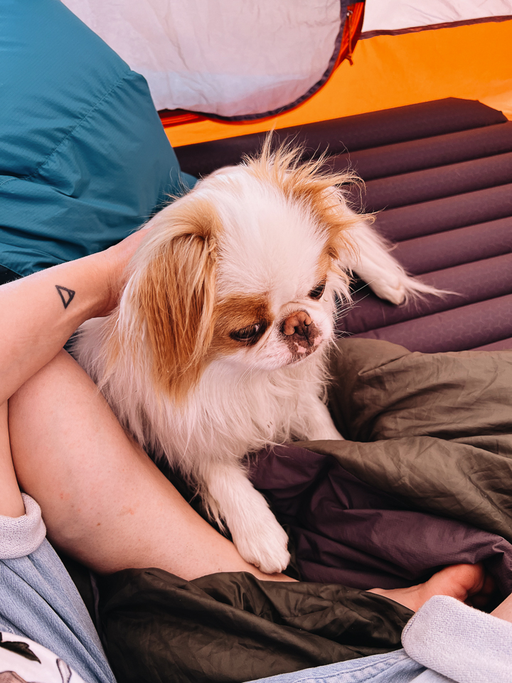 Patjan leveys tuntui aivan luksukselta ja vaikka koira viihtyikin paremmin teltan pohjaa vasten nukkuessa, mahtui se makoilemaan hyvin patjan jalkopäässä, eikä tullut missään vaiheessa tunnetta, että olisi tarvinnut pelätä patjan puhkeamista pienen koiran tassutellessa patjalla kynsineen. Tummasta väristään huolimatta patjan pinta ei myöskään juurikaan kuumentunut auringossa ollessaan.