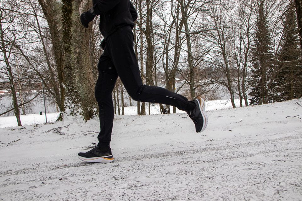 Testin aikana tuli juostua niin lumessa, sohjossa, jäällä ja kaikella mitä Etelä-Suomen vaihteleva kevättalvi tarjoaa. Parhaimmillaanhan nämä kengät ovat sulalla tiellä, mutta irtonastoilla selvisin liukkaimmista keleistä. Hyvä merinovillainen sukka toimi riittävänä lämmikkeenä pakkasillakin, kun pitää liikettä yllä.